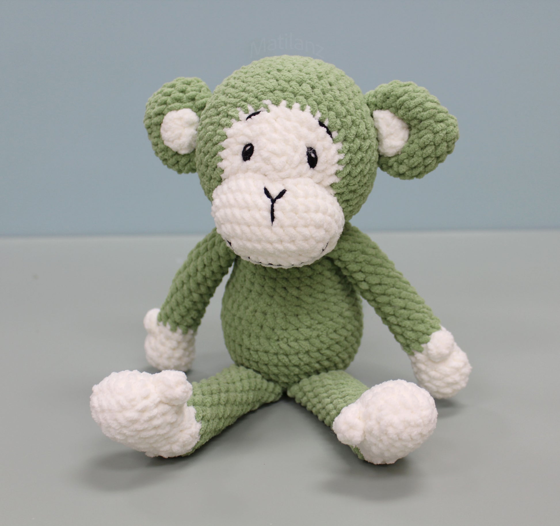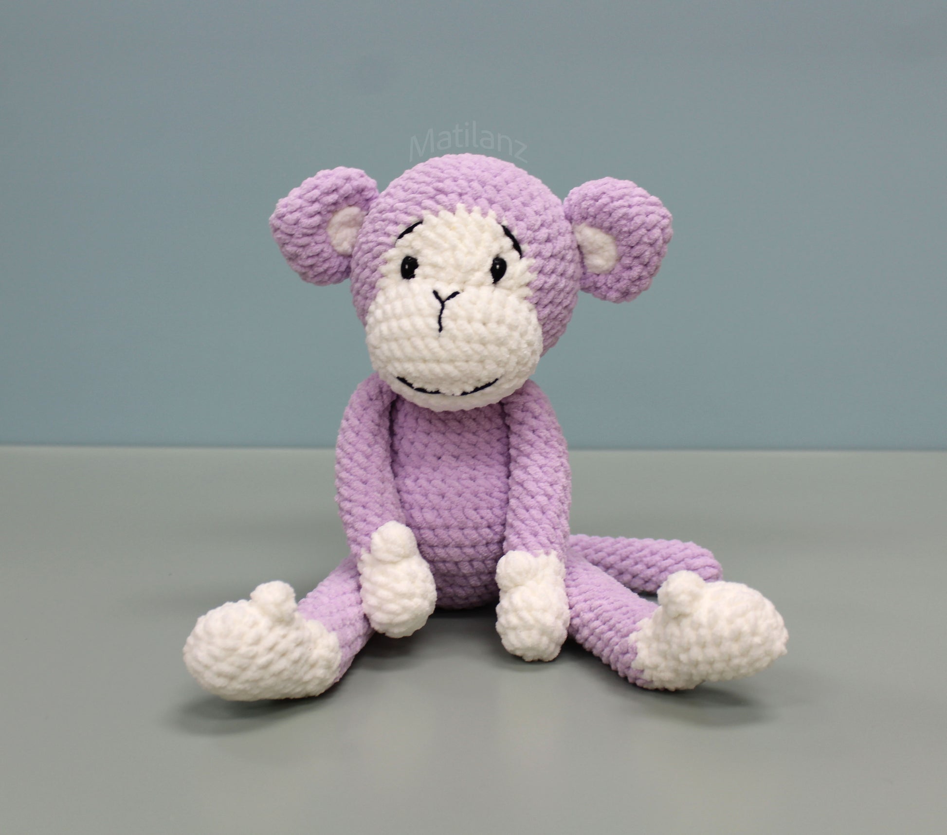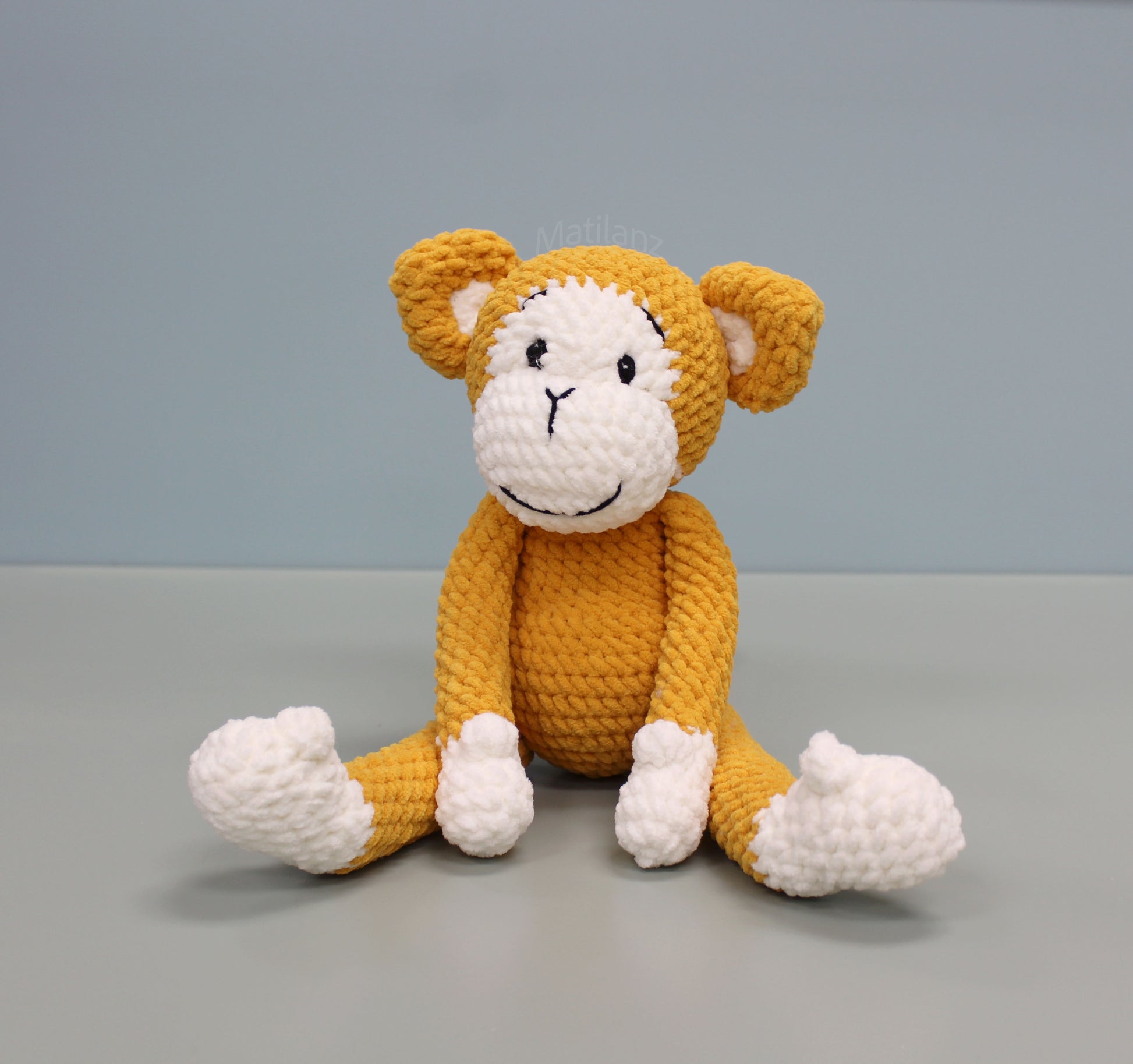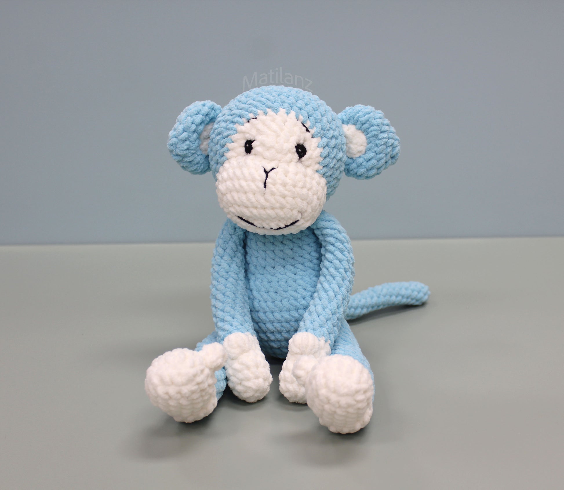 This Monkey Crochet Amigurumi Plush is a soft, sturdy, and handmade plush full of softness, charm and color. Each crochet monkey is lovingly crafted by Matilanz with tight stitches, stitched eyes, and a playful personality. Designed in cheerful many pastel tones, this colorful and rainbow monkey plush makes a fun and safe gift for kids, with no hard plastic parts and a soft, huggable feel. Available pink, blue, green, rainbow, light brown, dark brown, purple, and yellow. Our crochet monkeys are washable, kid-safe, and built to last through years of love and play. Ships the next day. Whether you're shopping for a birthday gift, baby gift, baby shower gift, or just a sweet handmade gift, this cozy sock monkey brings joy to any child’s room. Great for collectors of plush toys, crochet plushies, or anyone who loves handmade gift.