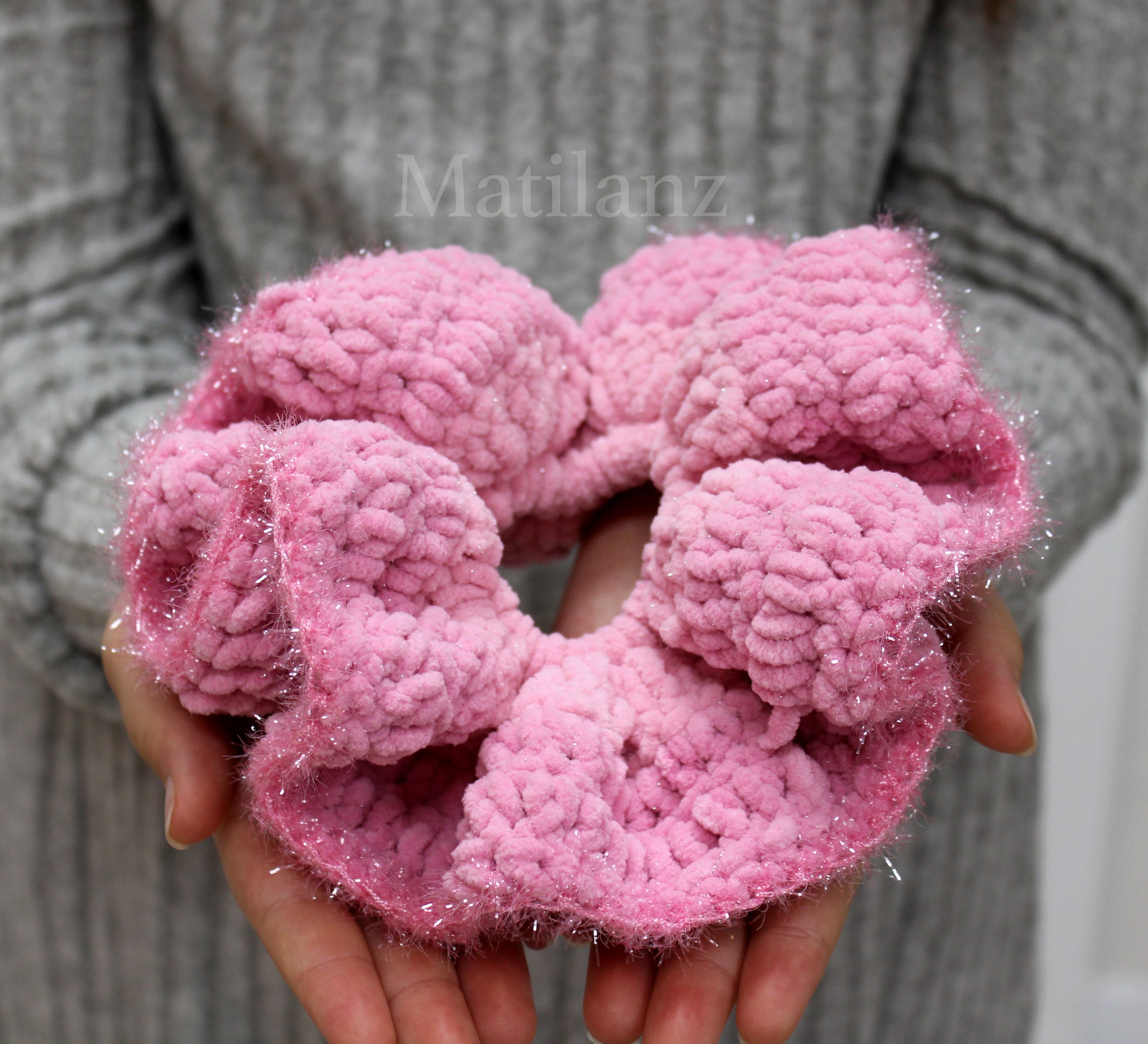 Each one is crocheted by hand around a strong elastic core, giving it a secure hold without pulling or tangling. The oversized design makes it perfect for ponytails, buns, or as a bold wrist accessory. It’s a fun and functional piece that’s just the right mix of cozy and cute. A thoughtful gift for her or just a fun way to brighten up your hair drawer!