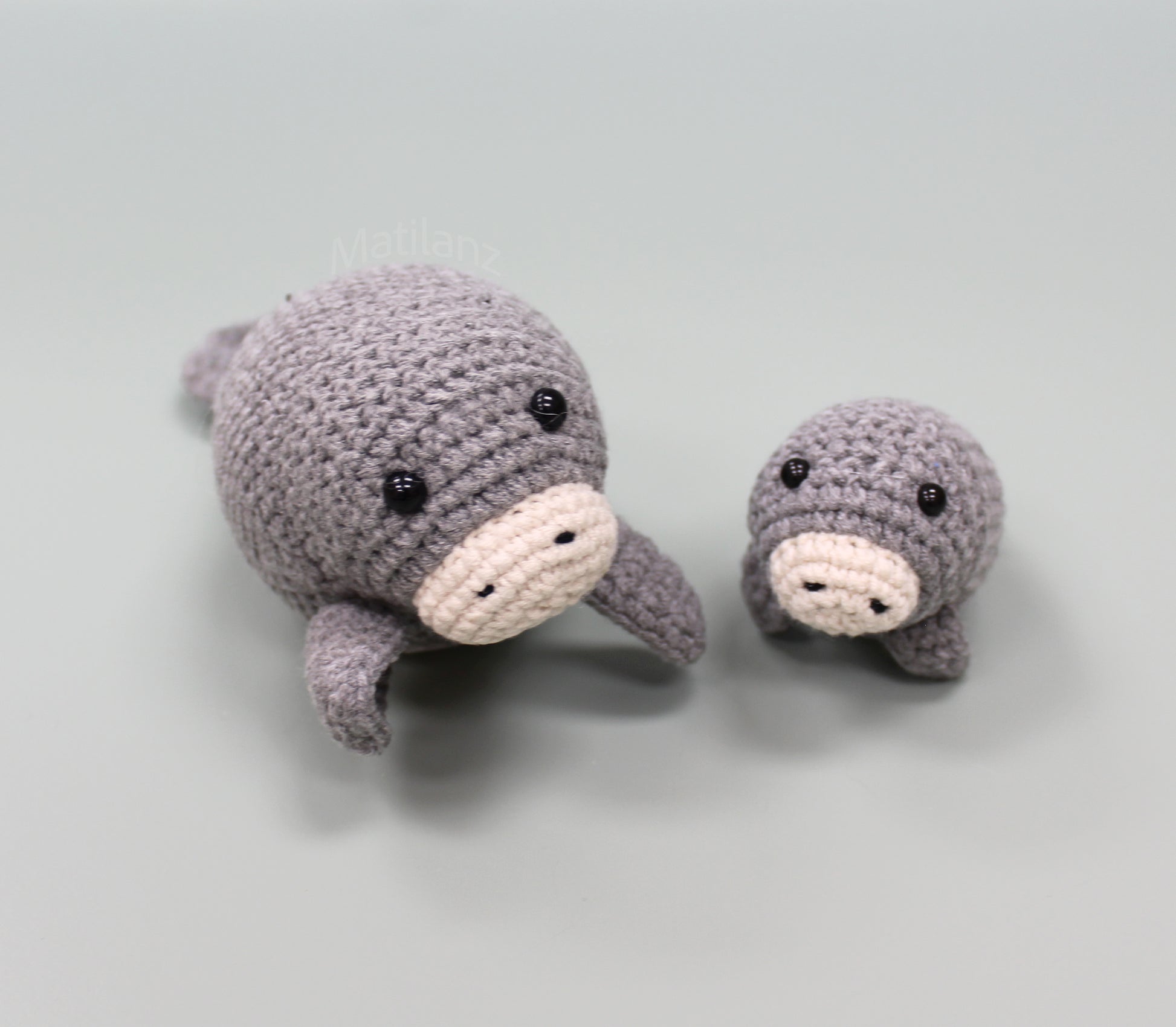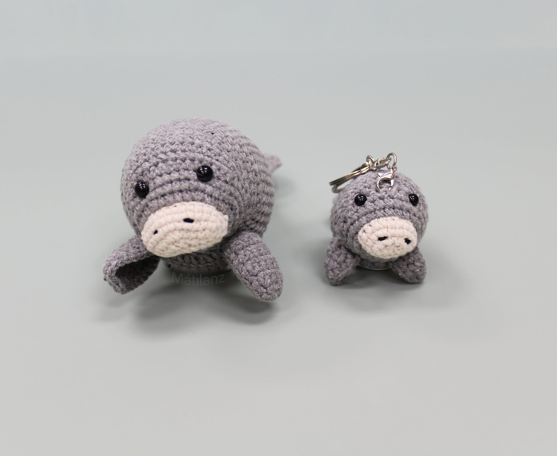 Meet our sweet handmade crochet manatee — cute, soft, and cuddly. This lovable manatee friend is available in two sizes: a small plush 6'' and a pocket-size 3'' version that can be used as a keychain or pocket plushie.